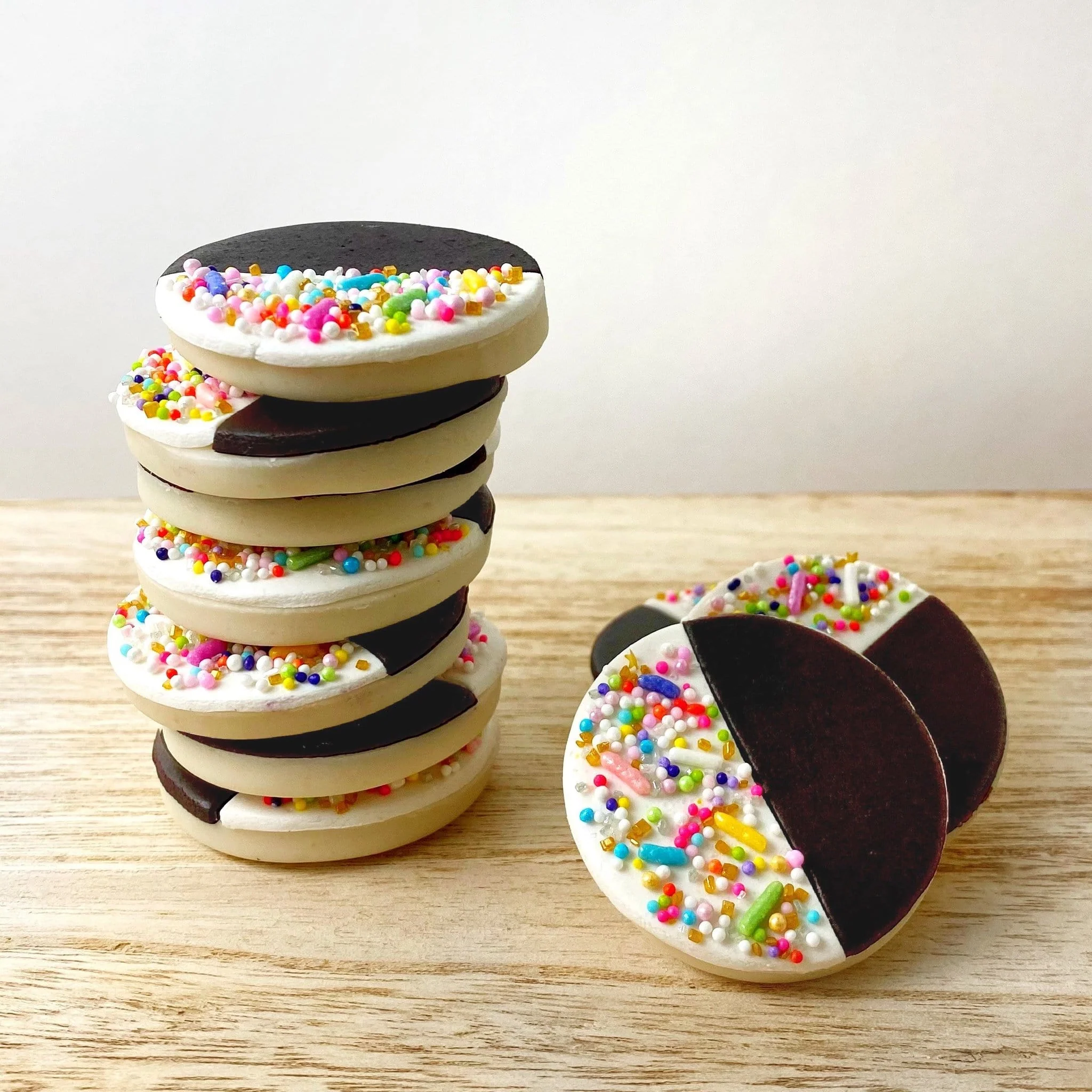 Marzipan Sprinkle Black & White Cookies